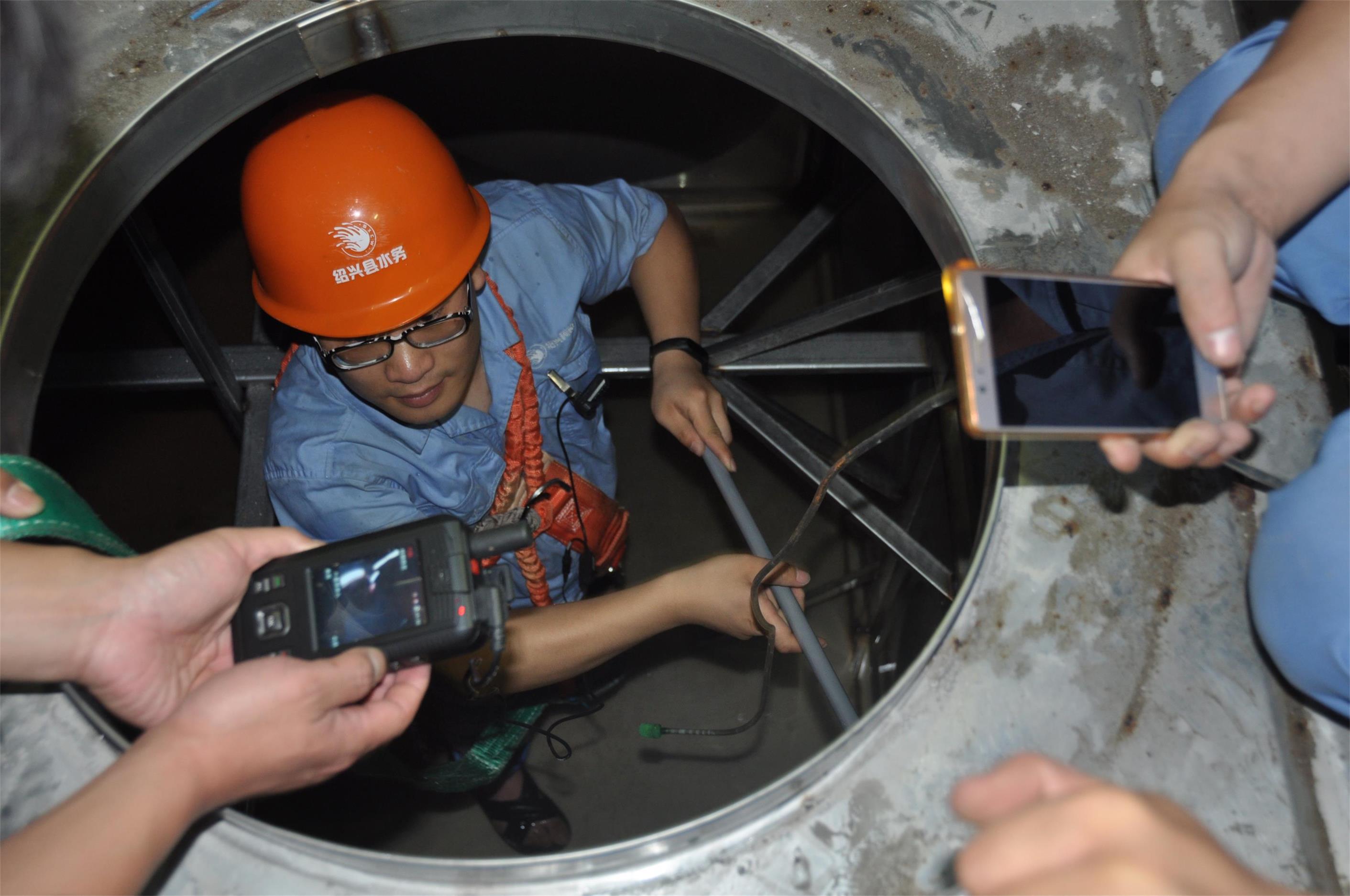6月20日上午,位于和諧家園小區(qū)6幢地下一樓的水箱房?jī)?nèi),供水公司工作人員正在對(duì)箱式無負(fù)壓設(shè)備水箱進(jìn)行清洗。