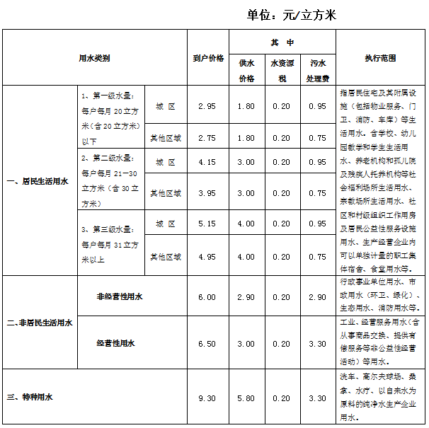 柯橋區(qū)自來(lái)水水價(jià)收費(fèi)標(biāo)準(zhǔn)